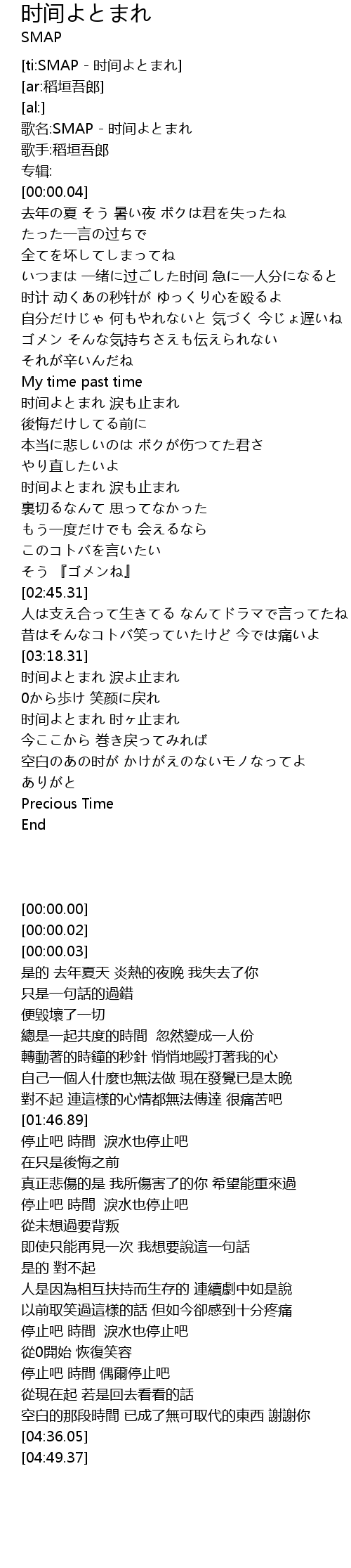 | [00:00.00] | 歌名:SMAP - 时间よとまれ |
