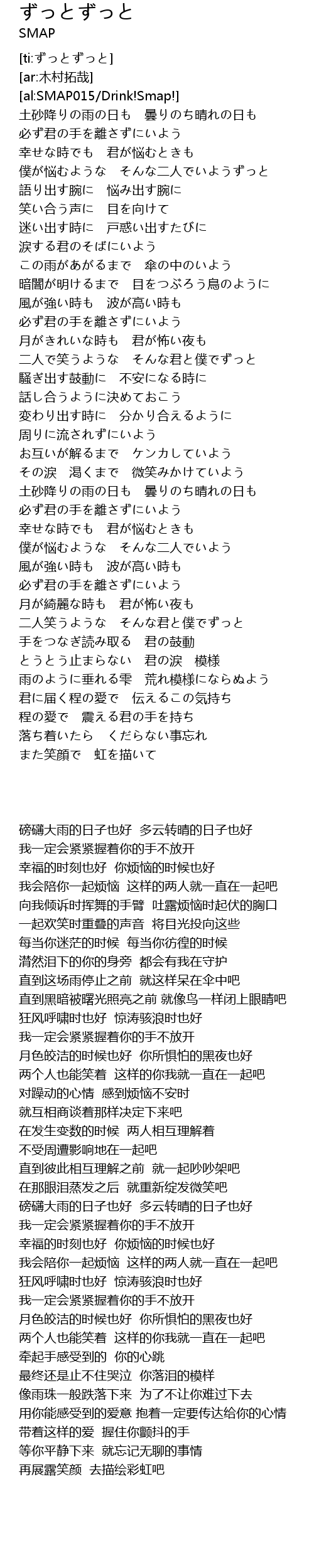 | [00:20.44] | 土砂降りの雨の日も 曇りのち晴れの日も |
