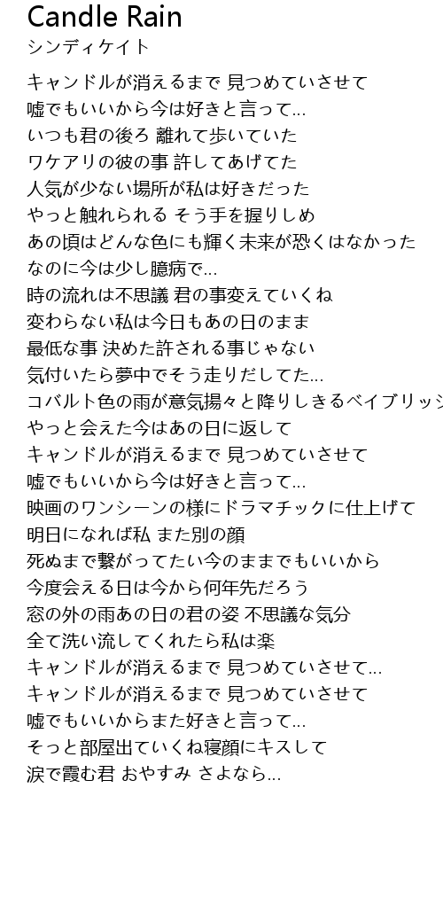 | [00:15.76] | キャンドルが消えるまで 見つめていさせて |