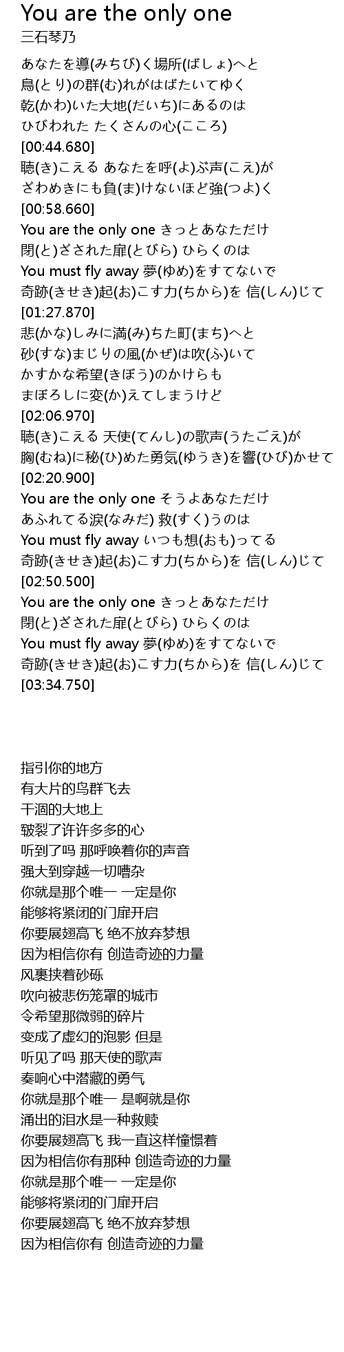 | [02:35.100] | You must fly away いつも想(おも)ってる |