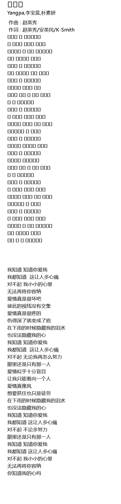 | [00:01.00] | 作词 : 赵英秀/安英民/K-Smith |