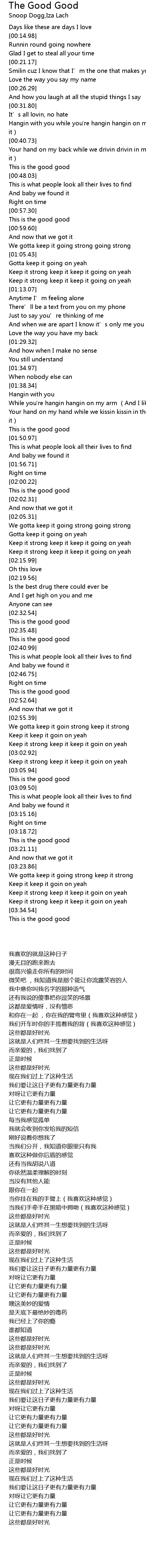 | [02:00.78] | This is the good good |