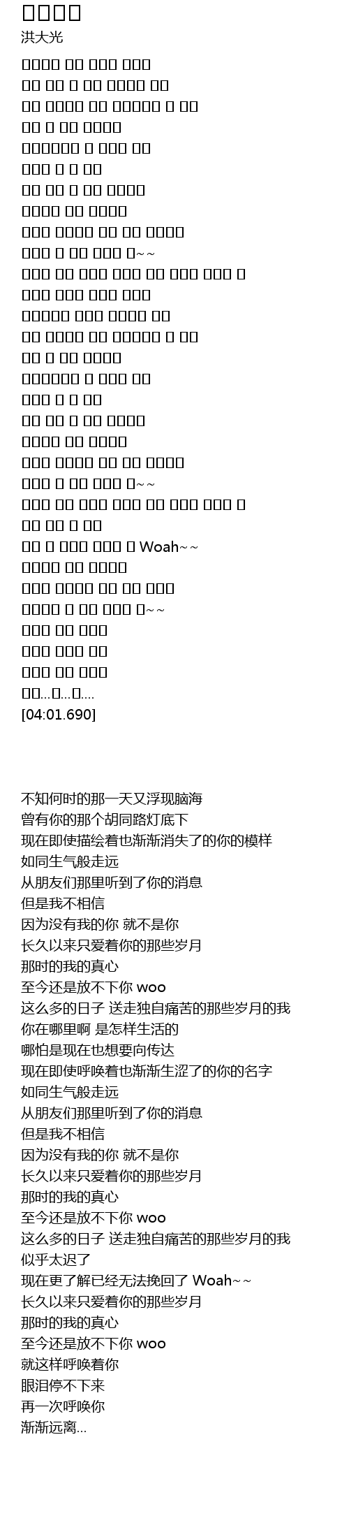 | [01:41.870] | 이젠 불러봐도 점점 어색해지는 네 이름 |