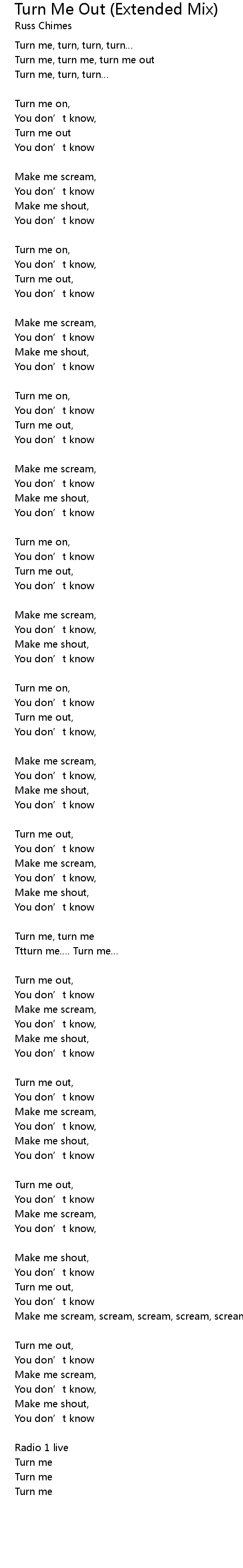 | Make me scream, scream, scream, scream, scream … | |