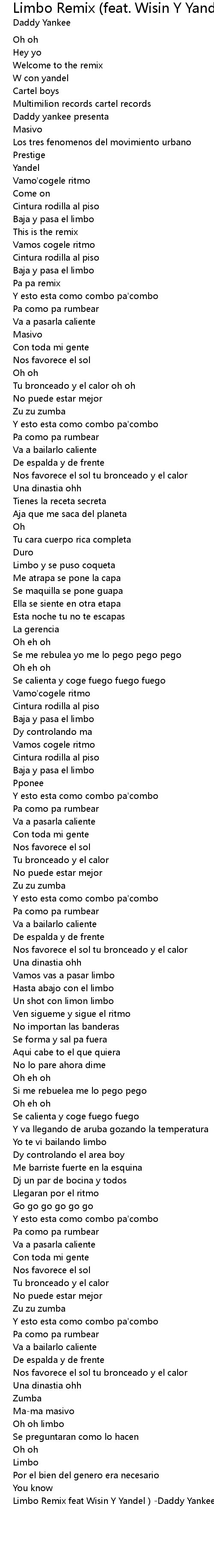 | [03:30.658] | Limbo Remix feat Wisin Y Yandel Daddy Yankee |