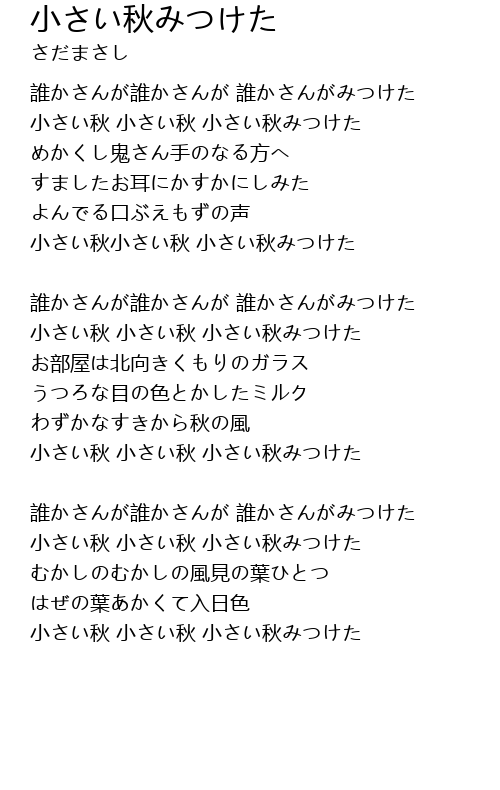 | 小さい秋 小さい秋 小さい秋みつけた | |