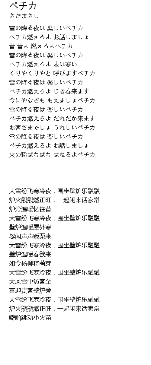 ペチカ燃えろよ だれだか来ます |