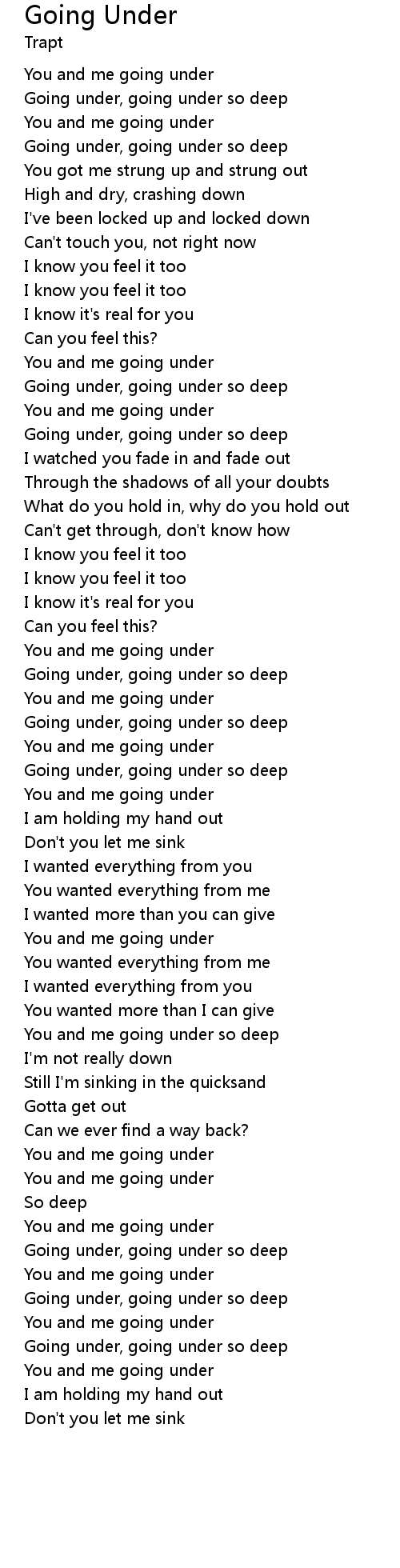 | Going under, going under so deep | |
