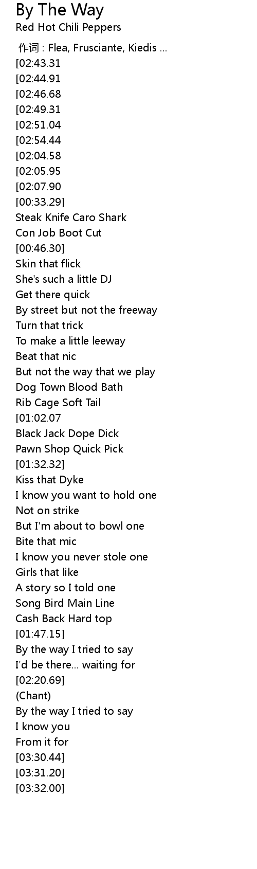 | [00:00.00] | 作词 : Flea, Frusciante, Kiedis ... |