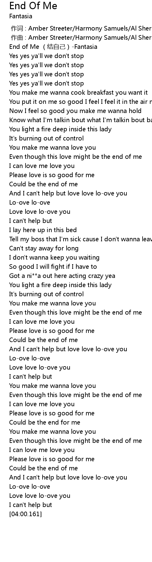 | [00:00.00] | End of Me (结自己)-Fantasia |