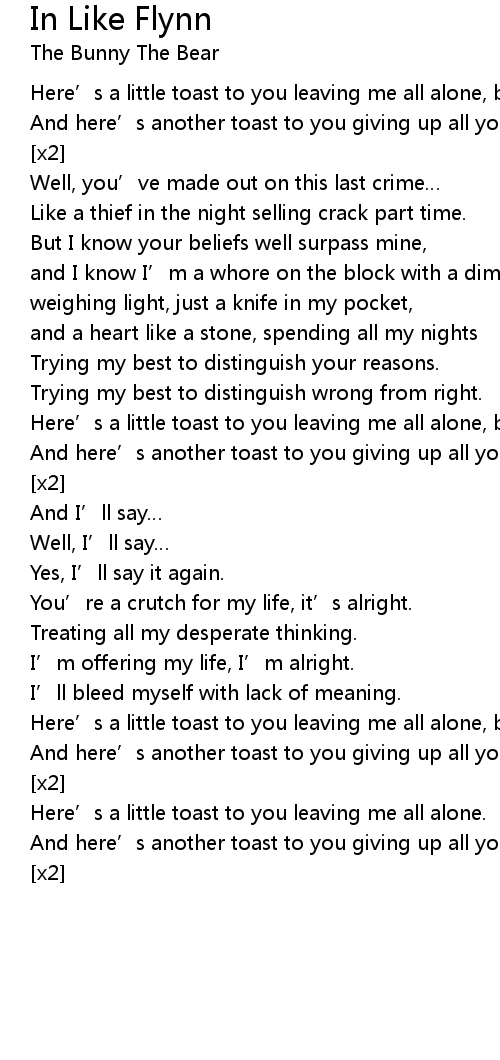 | Here' s a little toast to you leaving me all alone, bleeding. | |