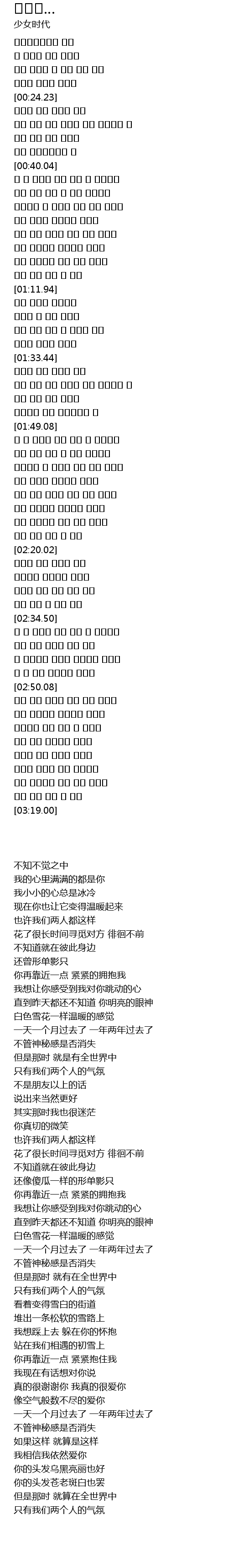| [00:52.49] | 하얀 눈처럼 포근하게 느껴져 |