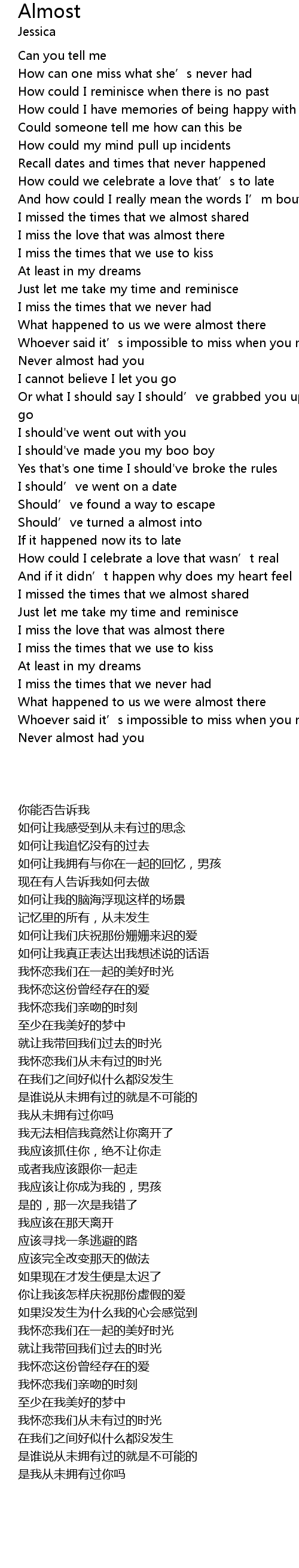 | [00:39.390] | I missed the times that we almost shared |
