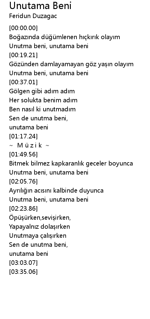 | [00:56.77] | Ben nasıl ki unutmadım |