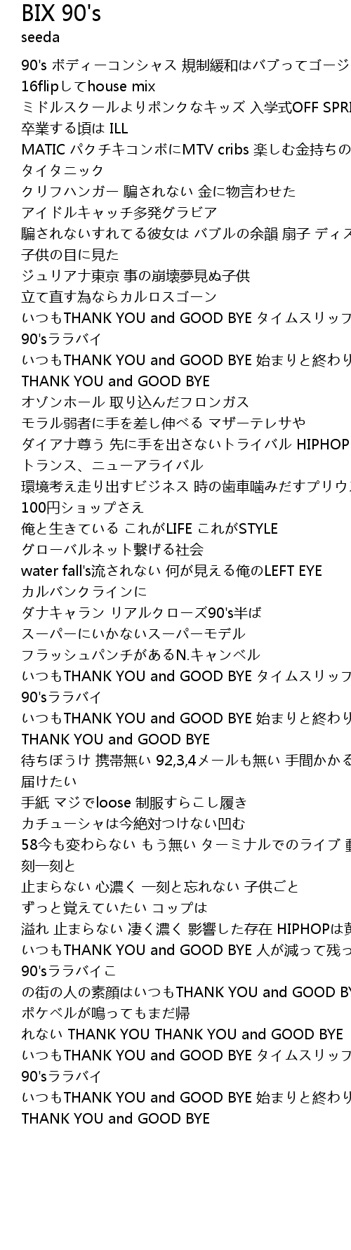 | いつもTHANK YOU and GOOD BYE タイムスリップはまだできない 90'sララバイ | |