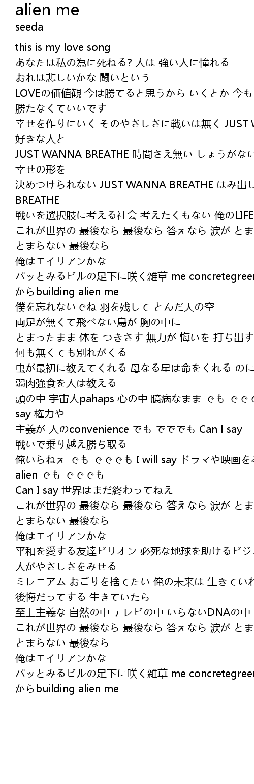 | 頭の中 宇宙人pahaps 心の中 臆病なまま でも でででも I will say 権力や | |