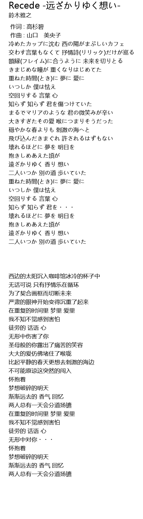 | [03:59.530] | 壊れるほどに 夢を 明日を |