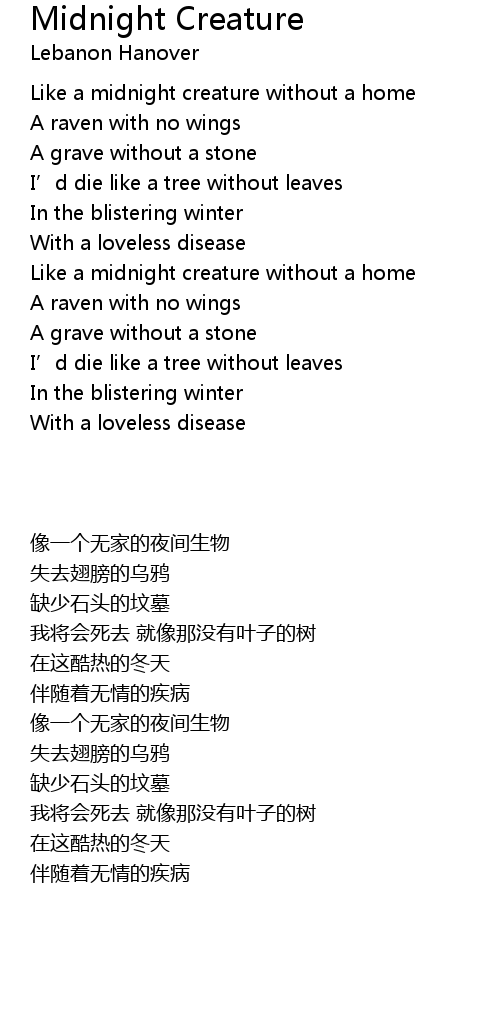 | [00:28.54] | Like a midnight creature without a home |