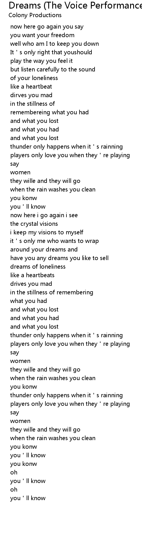 | Song | Dreams (The Voice Performance) |