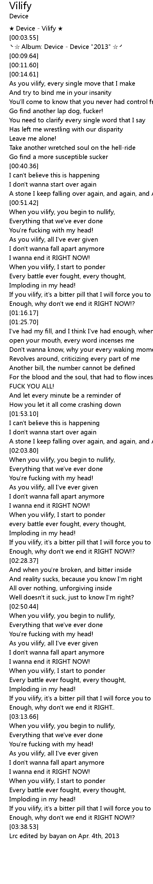 | [00:01.00] | ★ Device - Vilify ★ |