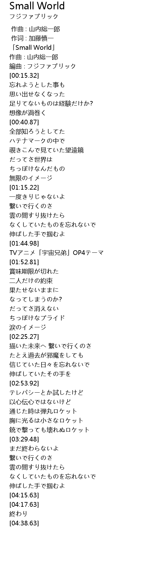 | [01:46.81] | TVアニメ「宇宙兄弟」OP4テーマ |