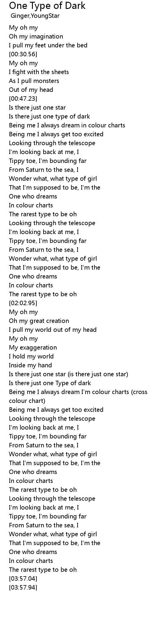 | [02:59.44] | Is there just one Type of dark |