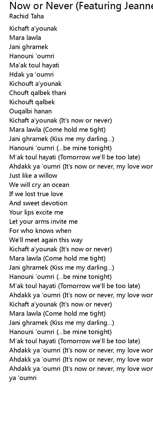 Ahdakk ya 'oumri (It's now or never, my love won't wait) |