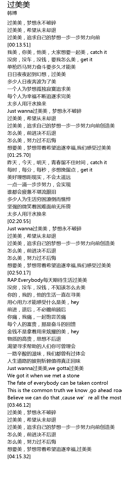 | [03:53.79] | 过美美,追求自己的梦想一步一步努力向前创造美 |