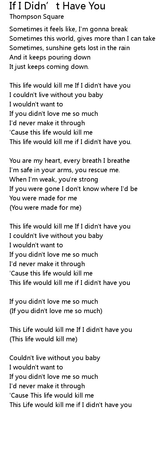 This Life would kill me If I didn't have you |