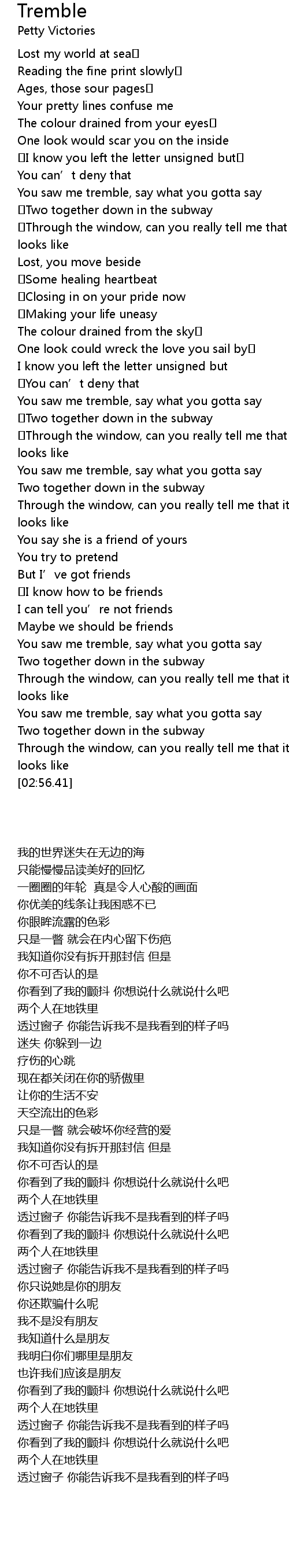 | [00:43.14] | You saw me tremble, say what you gotta say |
