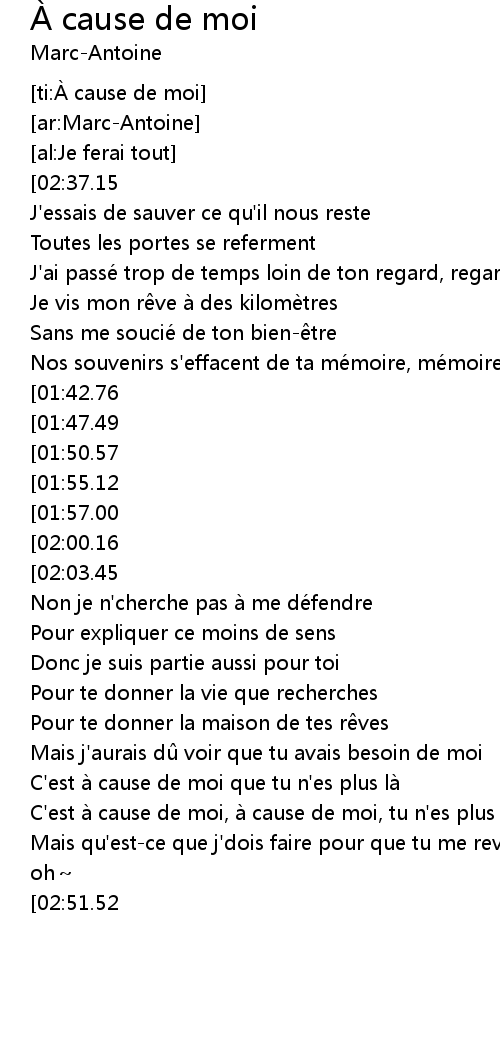 | [02:48.30][02:51.52] | c' est à cause de moi, moi |
