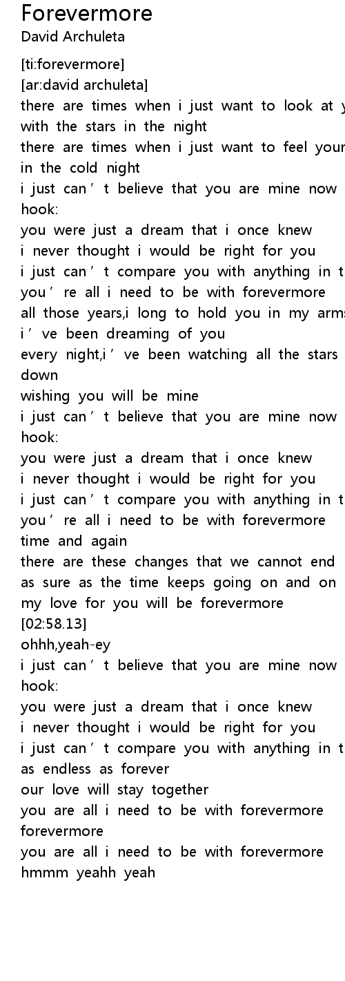 | [02:18.32] | you ’re all i need to be with forevermore |