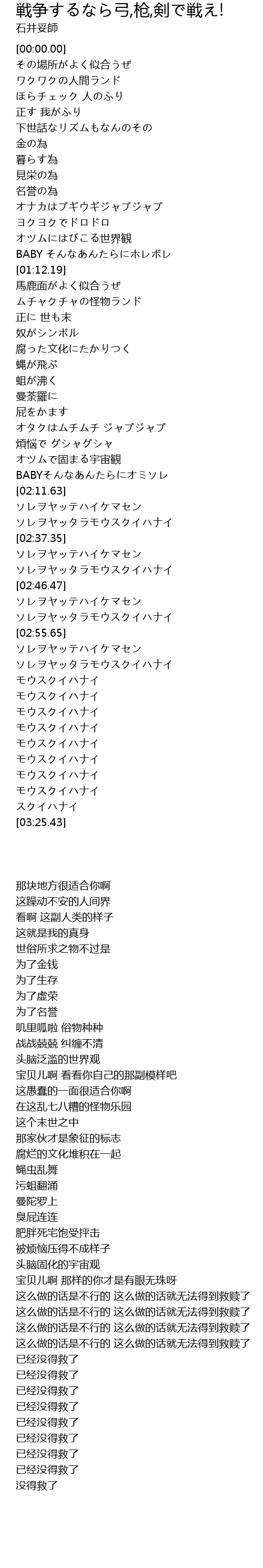 | [02:38.33] | ソレヲヤッテハイケマセン ソレヲヤッタラモウスクイハナイ |