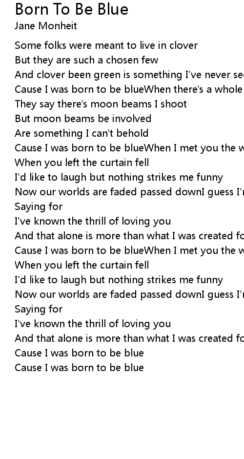 Cause I was born to be blueWhen I met you the world was bright and sunny |