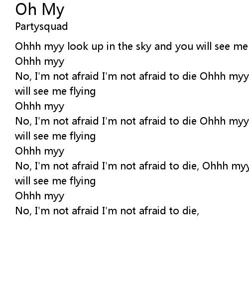 | No, I'm not afraid I'm not afraid to die Ohhh myy look up in the sky and you will see me flying | |