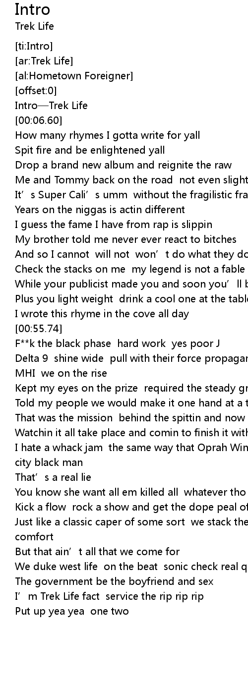 | [01:35.98] | I' m Trek Life fact service the rip rip rip |