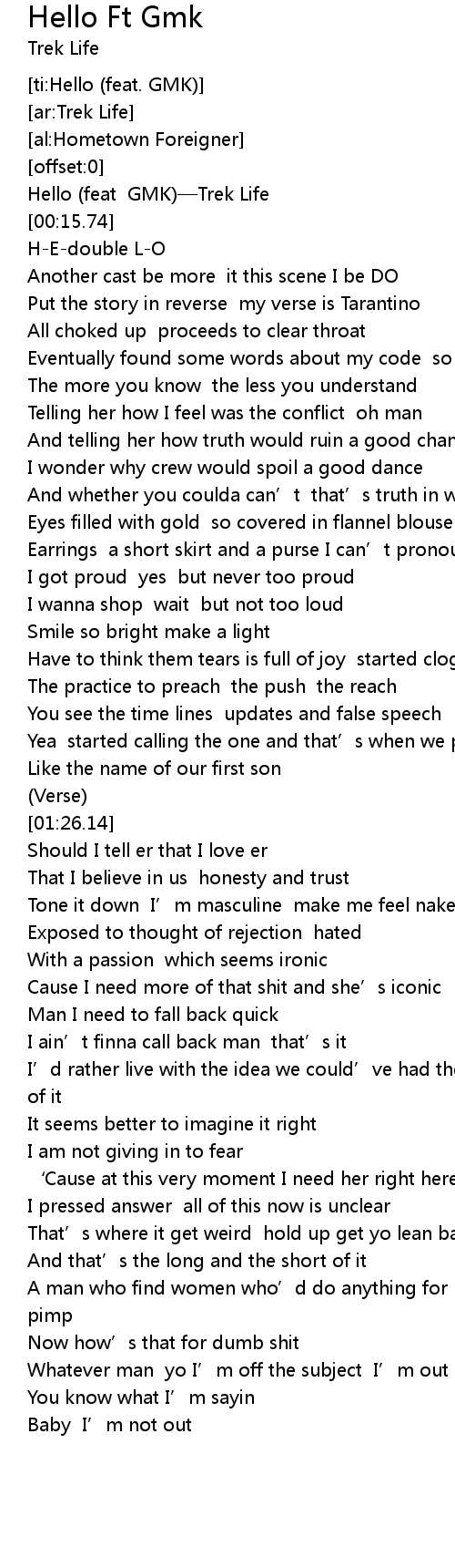 | [00:12.87] | Hello feat GMK Trek Life |