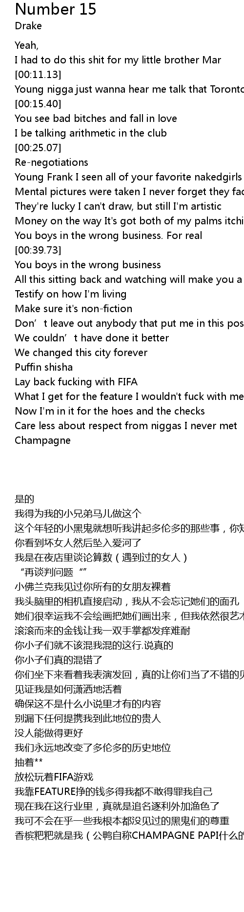 | [00:13.50] | Young nigga just wanna hear me talk that Toronto shit, you know? |