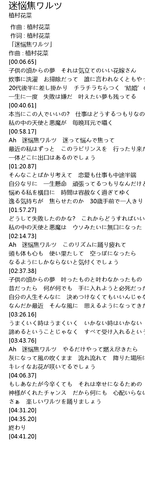 | [00:00.65] | 「迷悩焦ワルツ」 |