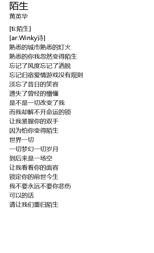 | [00:15.657] | 熟悉的你我忽然变得陌生 |
