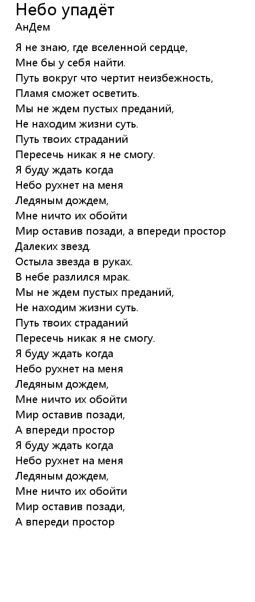 Небо упадёт  Lyrics