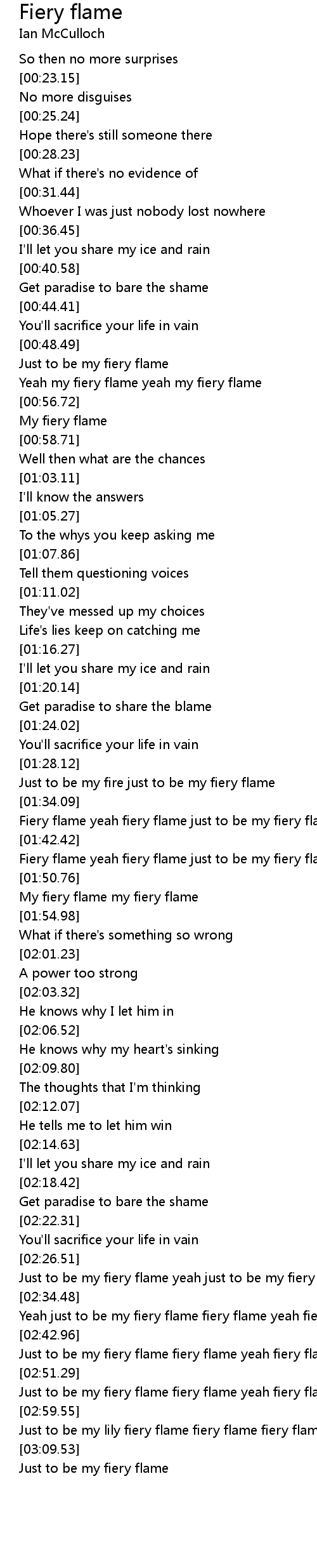 Fiery flame yeah fiery flame just to be my fiery flame |