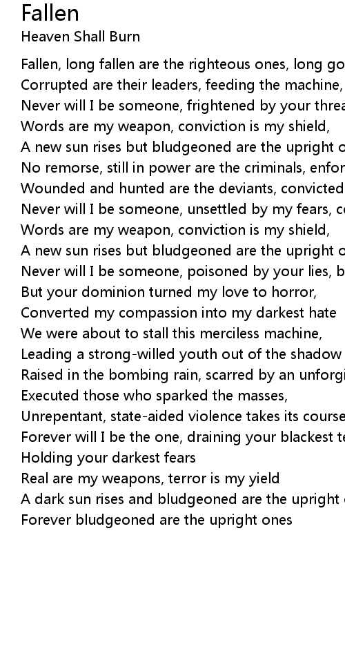 Fallen, long fallen are the righteous ones, long gone their high ideals