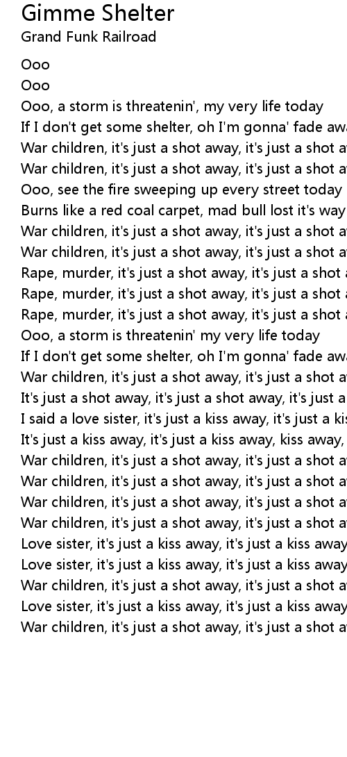 If I don't get some shelter, oh I'm gonna' fade away |