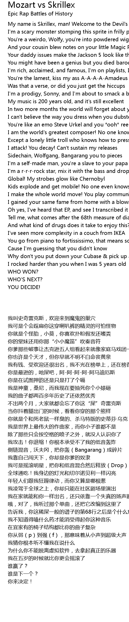 I am the world's greatest composer! No one knows what you are |