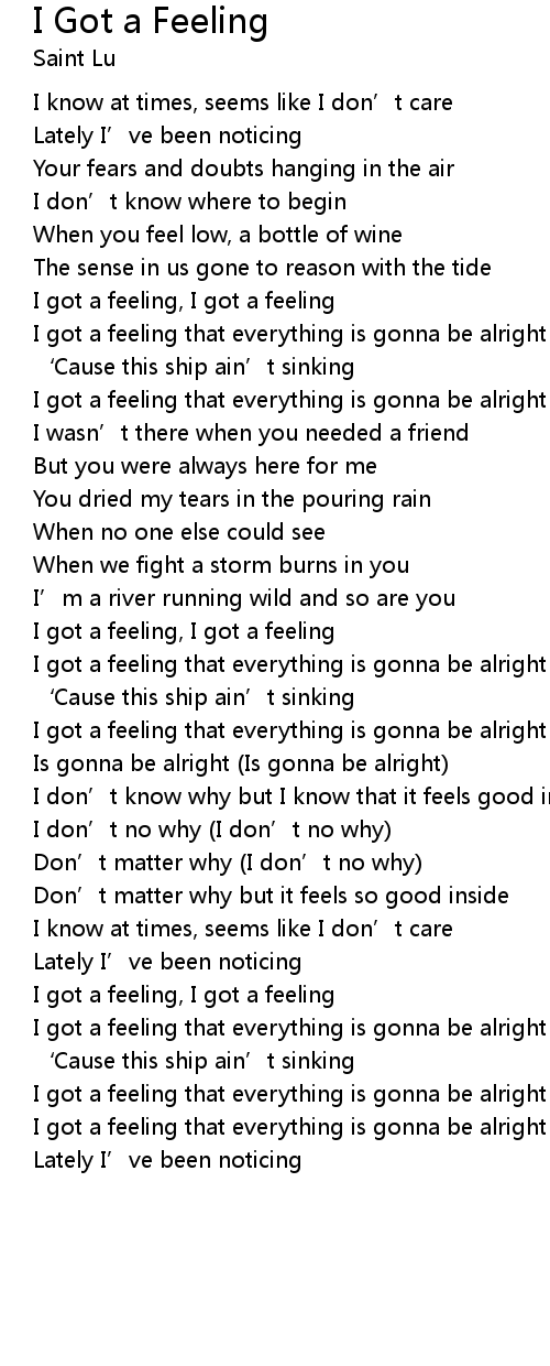 | I got a feeling that everything is gonna be alright (Is gonna be alright) | |