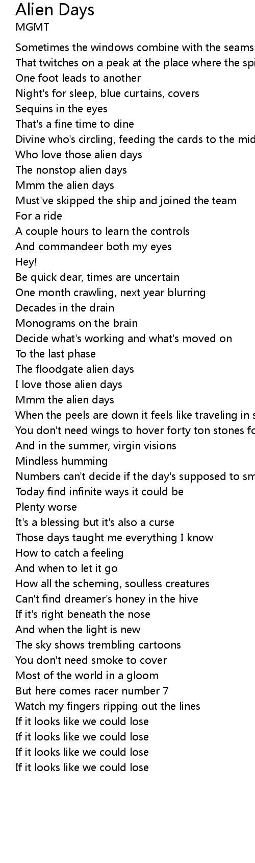 Alien Days Lyrics