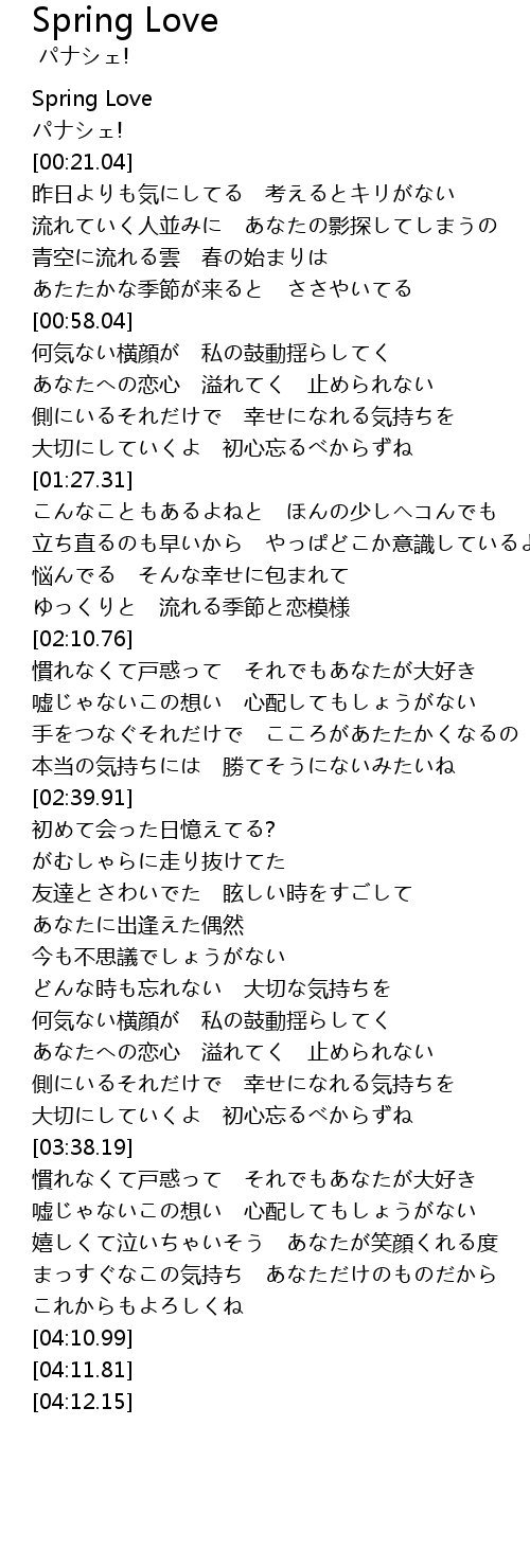 | [03:38.49] | 慣れなくて戸惑って それでもあなたが大好き |