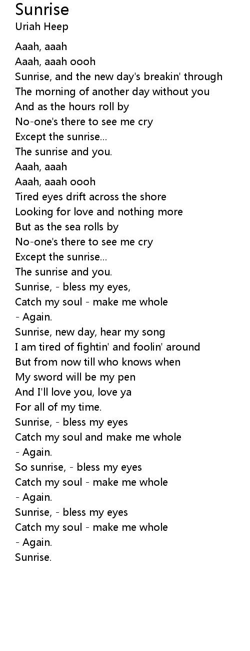 Sunrise, new day, hear my song |