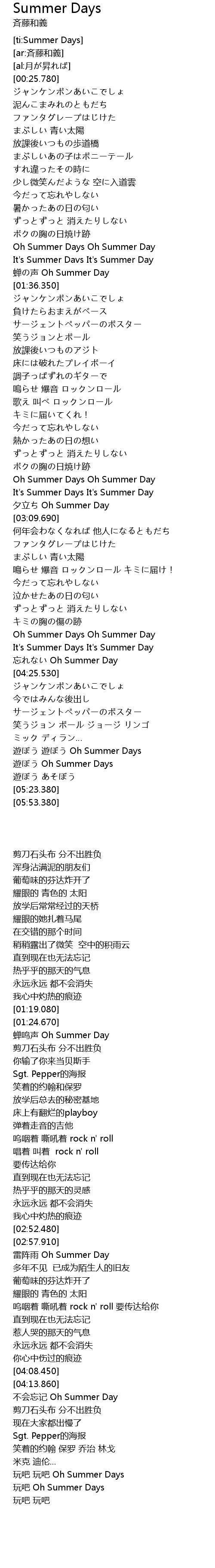 | [02:52.480] | Oh Summer Days Oh Summer Day |